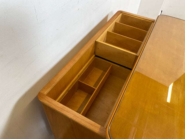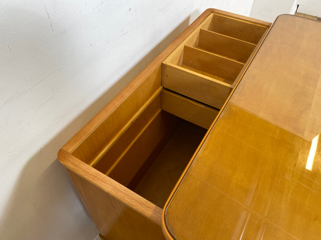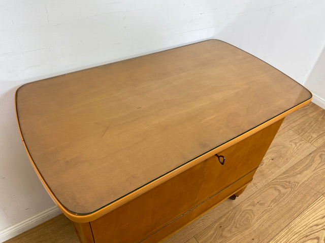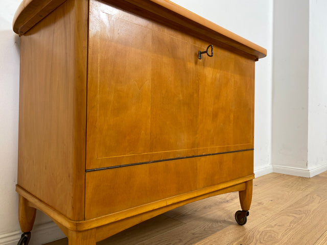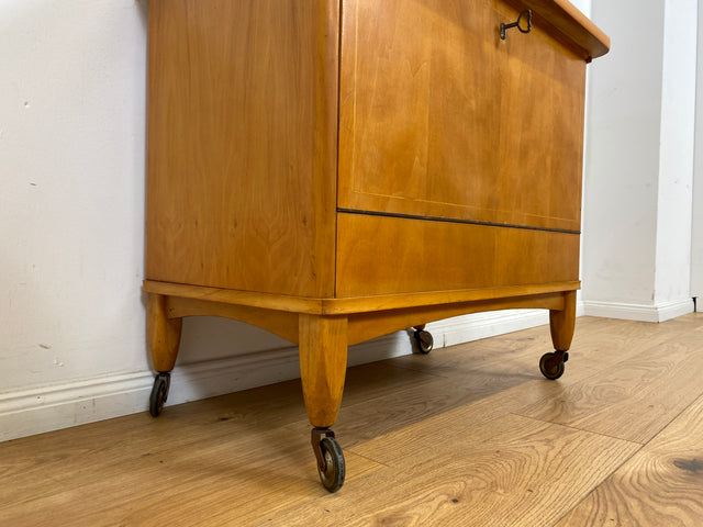 Formschöne und sehr gut erhaltene Mid-Century Barkommode aus 1958 auf Rollen mit Flaschen- & Gläserhalterungen