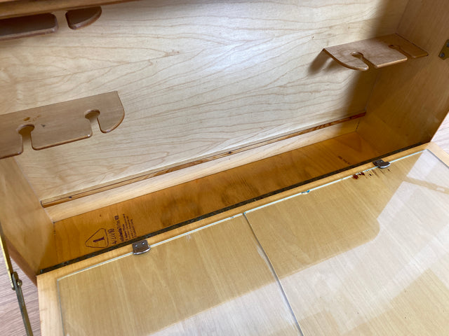 WMK Formschöne und sehr gut erhaltene Mid-Century Barkommode aus 1958 auf Rollen mit Flaschen- & Gläserhalterungen # Bar Barschrank Mini-Bar Servierwagen Teewagen Kommode Vintage DDR Rockabilly 50er