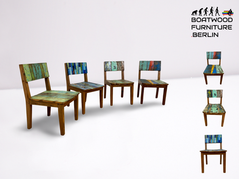 Boatwood by WMK # 1/4Einzigartiger und sehr robuster Stuhl aus altem Bootsholz mit original Bootsfarben, ein handgefertigtes Unikat aus massivem Teakholz # Esszimmerstuhl Küchenstuhl Holzstuhl Chair