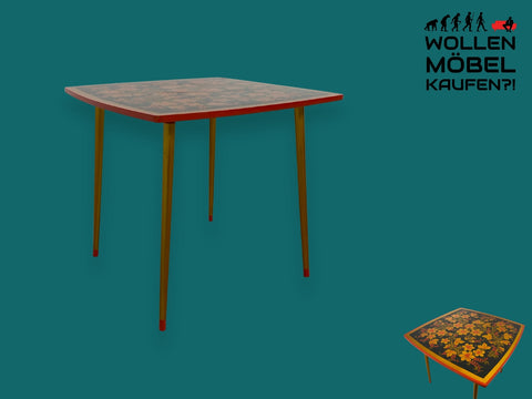 WMK # Freundlicher und gut erhaltener Mid-Century Couchtisch im Chochloma Stil handbemalter Oberfläche & konischen Füßen # Wohnzimmertisch Coffee Table Beistelltisch Nierentisch Vintage 50er 60er
