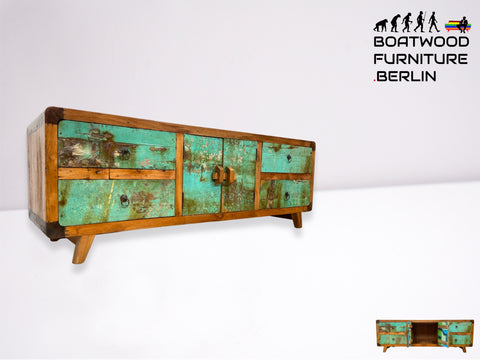 Bunterschönes & nachhaltiges Sideboard aus altem Bootsholz, ein handgefertigtes Unikat aus massivem Teakholz
