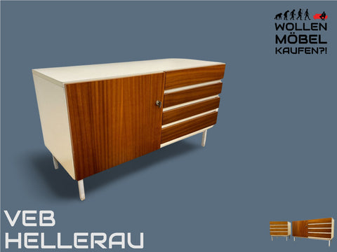 WMK I Seltenes weißes Sideboard Modell 800 von VEB Hellerau aus 1969 mit Schubladen & Metallfüßen I Kommode Schrank Lowboard TV Bank Fernseh Schuh Wäsche Schubladen DDR 70er Vintage Berlin Bochum Köln