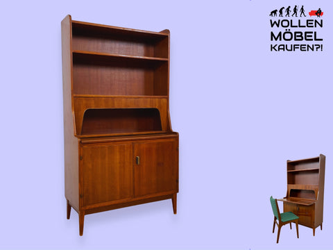 WMK I Schöner skandinavischer Mid-Century Bücherschrank mit ausziehbarer Schreibfläche und Geheimfach I Sekretär Schreibtisch Regal Bücherregal Highboard Kommode Vintage 60er Berlin Hannover Leipzig