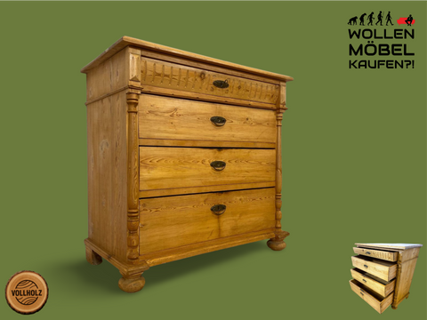 WMK I Wunderschöne nordische antike Kommode aus vollem Holz mit Schubladen und Messingbeschlägen I Schrank Flur Weichholz Wäsche Wickel Bauern Landhaus Vintage Biedermeier Berlin Dresden Regensburg