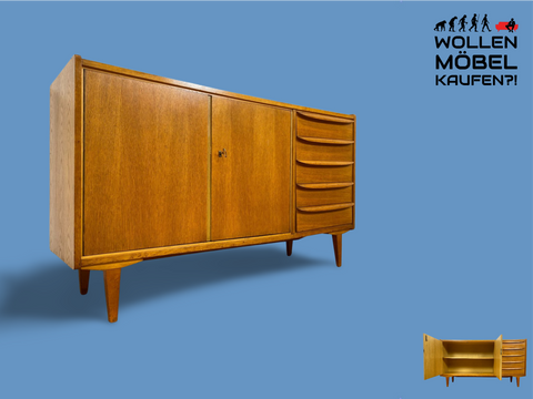 WMK I Stilvolles Mid-Century Sideboard in Eiche mit Schubladen I Kommode Schrank Wohnzimmerschrank Anrichte Lowboard TV-Schrank TV-Board Vintage DDR Berlin Dresden Bayern Frankfurt