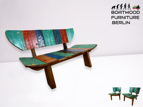 Boatwood by WMK # Bunte, sehr stabile und nachhaltige Sitzbank I Handmade Unikat aus altem Bootsholz I Teakholz massiv # Holzbank Bank Sofa 3er Küchenbank Balkonmöbel Outdoor Usedom Rostock Bodensee