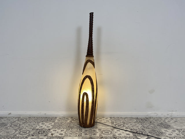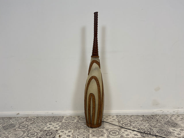 WMK Kunstvolle & gut erhaltene Bodenlampe , 120cm, zweistrahlig, vermutlich aus Indien, strukturiertes Plexiglas mit Flechtarbeiten # Stehlampe Stehleuchte Bodenleuchte Lampe Leuchte Licht Bodenvase