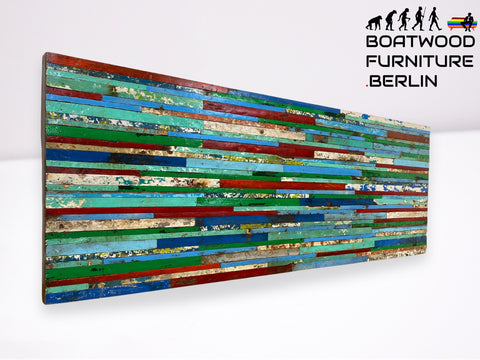 Boatwood by WMK I Einzigartiges Patchwork Paneel handgefertigt aus altem Bootsholz in Originalfarben I buntes Wandbild Holz Bild Wandpaneel Kunstwerk Gemälde Bootsholz Treibholz Berlin Sylt Rostock €585,00
