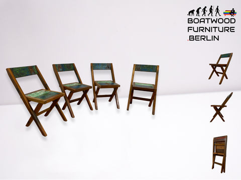 Boatwood by WMK # 4er Set besonderer Klappstühle aus altem Bootsholz I handgefertigte Unikate in original Farben I Stühle Küchenstuhle Holzstühle Campingstühle Balkonstühle Gartenstühle Berlin Bremen