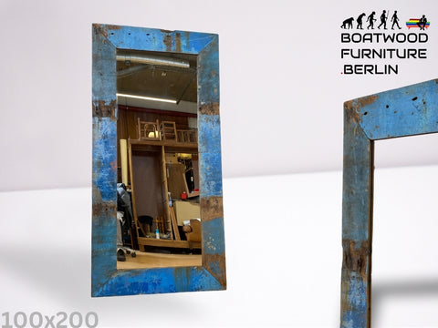Boatwood by WMK I Meeresblauer 100x200cm großer Spiegel I handgefertigtes Unikat aus altem Bootsholz in Originalfarbe I Wandspiegel Standspiegel Ganzkörperspiegel Flurspiegel Garderobe Berlin Hof Ulm