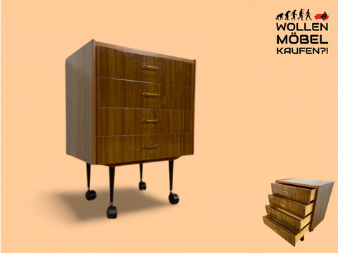 WMK I Hübsche kleine dunkle 70er Jahre DDR Kommode mit Schubladen , formschönen Messinggriffen & Metallfüßen I Schränkchen Tisch Nacht Wäsche Flur Beistell Bad Retro Vintage VEB Berlin Hamburg Bochum