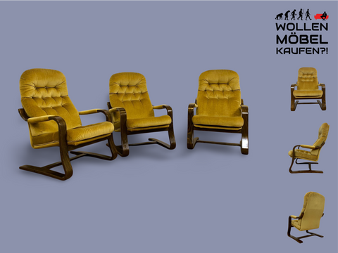 1/3 Formschöner, äußerst bequemer & sehr gut erhaltener skandinavischer Freisschwinger mit gestepptem Samtbezug