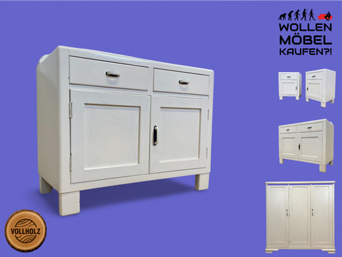 WMK I Formschöne weiße 1930er Jahre Art Deco Kommode aus vollem Holz mit Schubladen & hübschen Originalgriffen I Schrank Anrichte Sideboard Wickelkommode Wäschekommode Jugendstil Antik Vintage Berlin